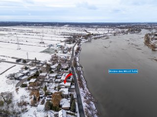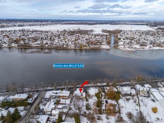 Located on the banks of the magnificent Rivière des Mille Îles, with easy access to Highways 440, 25, and 640, this century-old, two-bedroom home, with the main living areas all on one level, offers abundant natural light. The basement includes a family room, a workshop, and more. A solarium and a boudoir completes the picture. Garage. Enjoy a peaceful retreat with a park, golf course, and arena nearby. The property sits on an 8,800-square-foot lot. Wall-mounted heat pump. Generator installation possible.