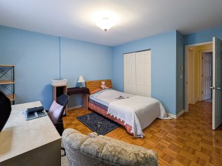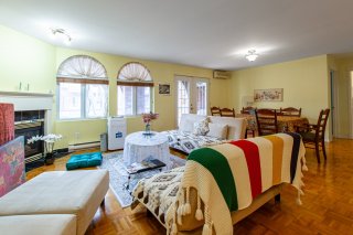 Bright and spacious 2-bedroom condo with 1 full bathroom and a powder room, ideally located in sought-after Angrignon. Features an open-concept living and dining area with a natural gas fireplace, two well-sized bedrooms including a walk-in closet, and a main bathroom with a whirlpool tub and separate shower. Includes a powder room with washer and dryer and a large private balcony. Building amenities include indoor parking, storage locker, elevator, bike/tire room, and outdoor pool. Steps to metro, park, shops, and ~15 minutes to downtown.